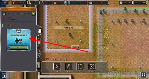 4、界面會顯示任務(wù),比如構(gòu)建建筑容納囚犯等,完成這些任務(wù)能推動游戲進(jìn)程,發(fā)展監(jiān)獄。