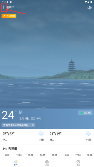 1、打開天氣類應(yīng)用,點擊左上角城市管理圖標,進入城市管理頁面。