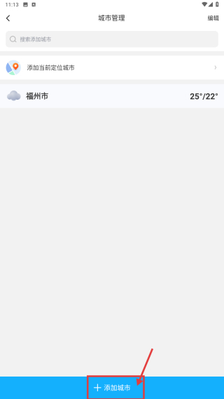 2、在城市管理頁面,點擊添加城市按鈕,進入城市選擇界面。