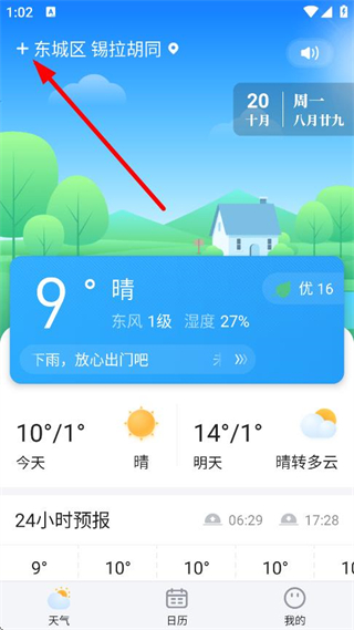 1、在天氣APP主頁面,點擊左上角+號,進入城市管理頁面。