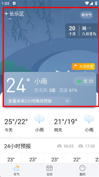 4、隨后我們選擇城市后,即可在APP主頁面查看該城市的天氣信息。