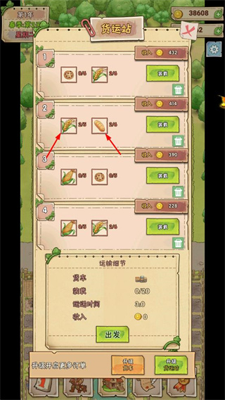 3、在貨運(yùn)站界面,將制作好的食品進(jìn)行運(yùn)輸,獲取金幣收益,運(yùn)輸收益可通過(guò)升級(jí)貨運(yùn)站模塊提升。