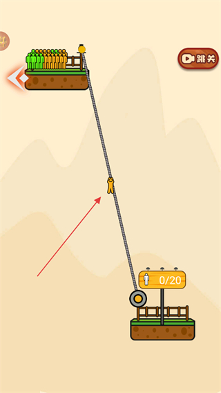 2、控制繩索連接上方平臺(tái)的小人,讓小人能順著繩索滑落。