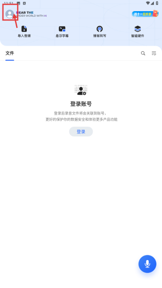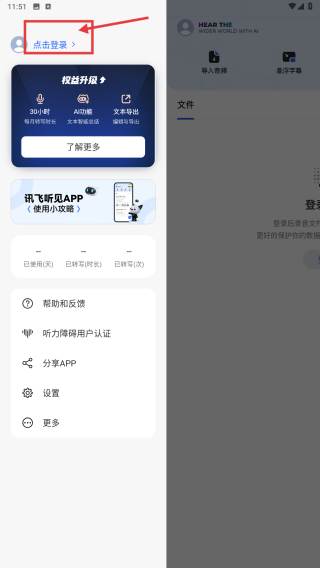 1、打開訊飛類應(yīng)用,點(diǎn)擊左上角個(gè)人中心圖標(biāo),展開功能菜單。
