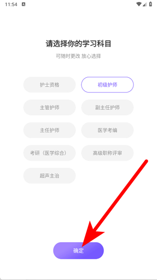 1、打開護(hù)考公社,選擇學(xué)習(xí)科目后,點(diǎn)擊確定。