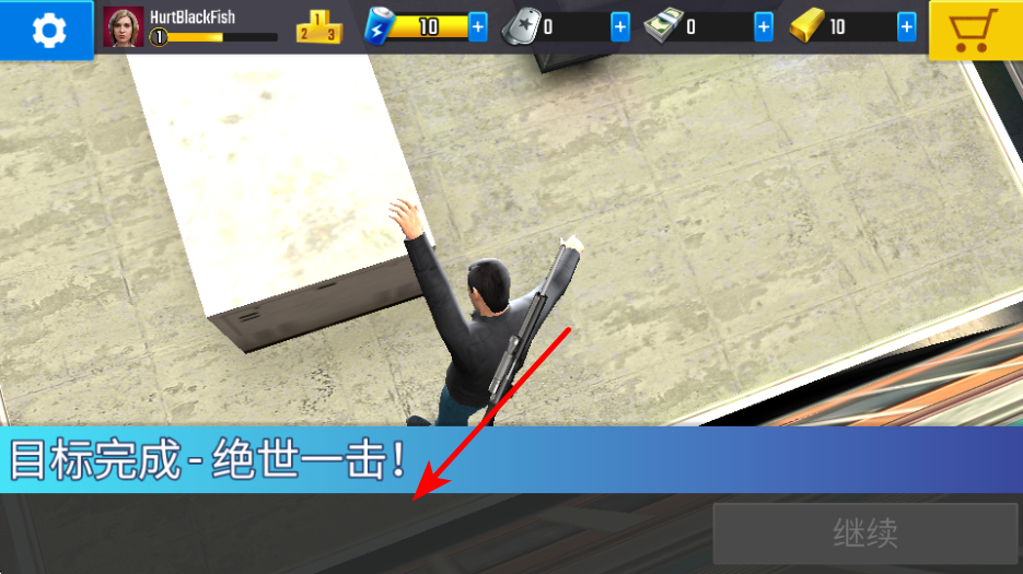 4、完成任務(wù)進(jìn)程,成功擊殺殺手后,點(diǎn)擊繼續(xù)按鈕,推進(jìn)游戲進(jìn)程,解鎖新的任務(wù)或場(chǎng)景,繼續(xù)游戲體驗(yàn)。