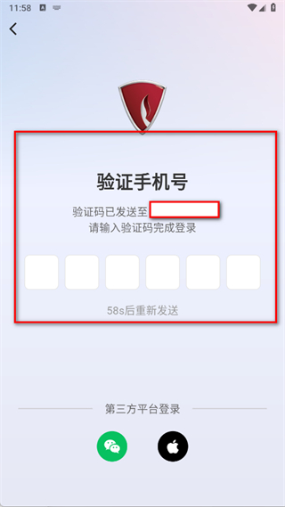 4、在驗(yàn)證手機(jī)號頁面,輸入收到的驗(yàn)證碼,完成注冊登錄。