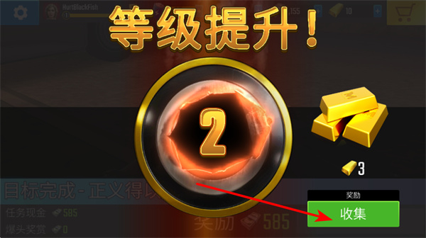 3、領(lǐng)取等級(jí)獎(jiǎng)勵(lì),點(diǎn)擊收集按鈕,領(lǐng)取等級(jí)提升至2級(jí)的獎(jiǎng)勵(lì),積累游戲資源,用于后續(xù)的裝備升級(jí)或任務(wù)推進(jìn)。