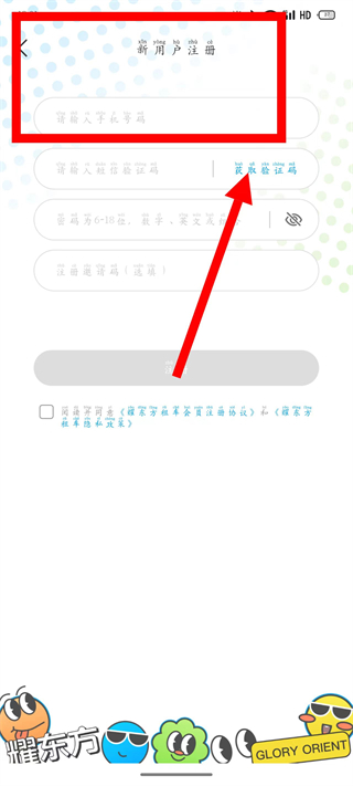 4、在新用戶注冊(cè)頁(yè)面,輸入手機(jī)號(hào)碼,點(diǎn)擊獲取驗(yàn)證碼。
