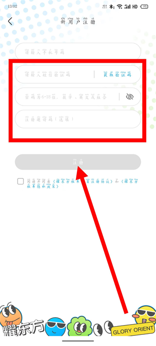 5、輸入收到的短信驗(yàn)證碼,設(shè)置密碼,勾選同意相關(guān)協(xié)議后,點(diǎn)擊注冊(cè),完成操作。