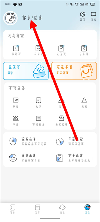 2、進(jìn)入我的頁(yè)面后,點(diǎn)擊登錄注冊(cè)選項(xiàng)。