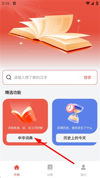 2、在APP主頁面,點擊中華詞典,進入詞典查詢頁面。