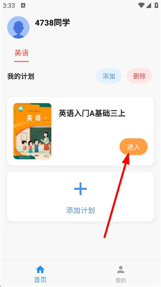 3、在APP首頁,點擊已添加計劃右側(cè)的進(jìn)入,進(jìn)入該學(xué)習(xí)計劃詳情頁面。