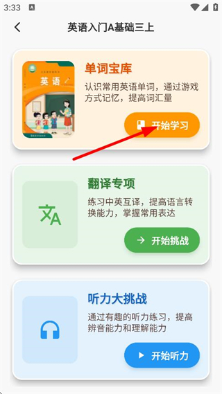 涵蓋單詞學(xué)習(xí)、中英文互譯、聽力大挑戰(zhàn)等多樣學(xué)習(xí)板塊,從詞匯、翻譯、聽力等多維度開展訓(xùn)練,全方位夯實英語基礎(chǔ),提升綜合語言運用能力。