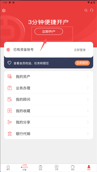 1、打開證券類應(yīng)用,點(diǎn)擊底部我的選項(xiàng),進(jìn)入個(gè)人中心頁(yè)面。