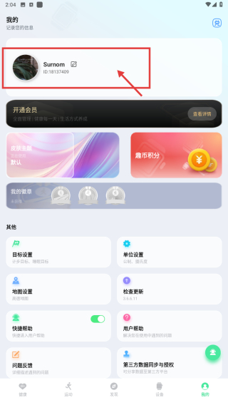 2、在個人中心頁面,點擊個人頭像區(qū)域,進入賬號頁面。
