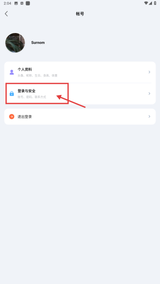 3、在賬號頁面,點擊登錄與安全選項,進入登錄與安全頁面。