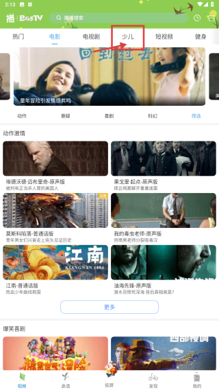 1、打開BesTV應(yīng)用,點(diǎn)擊頂部少兒分類標(biāo)簽,進(jìn)入少兒板塊。