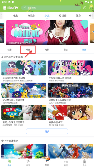 2、在少兒板塊,點(diǎn)擊動(dòng)畫分類標(biāo)簽,篩選動(dòng)畫類少兒內(nèi)容。