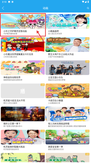 3、在動(dòng)畫類少兒內(nèi)容列表中,選擇小伶之守護(hù)精靈格靈動(dòng)畫,點(diǎn)擊進(jìn)入詳情頁。