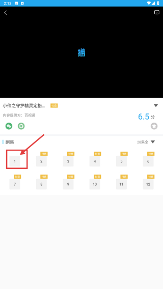 4、在動(dòng)畫詳情頁,點(diǎn)擊1集數(shù)按鈕,開始播放該動(dòng)畫的第1集。