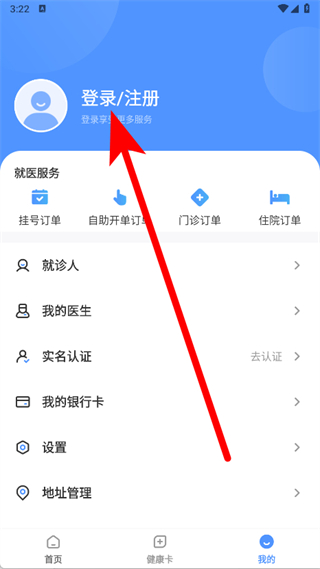 2、進(jìn)入我的頁面后,點擊登錄注冊選項。