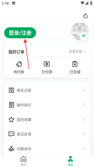 2、在個(gè)人頁(yè)面,點(diǎn)擊登錄注冊(cè),進(jìn)入登錄注冊(cè)選擇頁(yè)面。