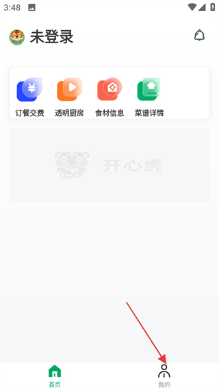1、進(jìn)入開心虎,在首頁(yè)點(diǎn)擊底部我的,進(jìn)入個(gè)人頁(yè)面。