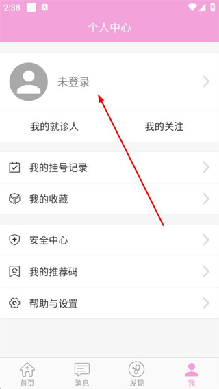 2、在個人中心頁面點擊未登錄區(qū)域,進入登錄頁面。
