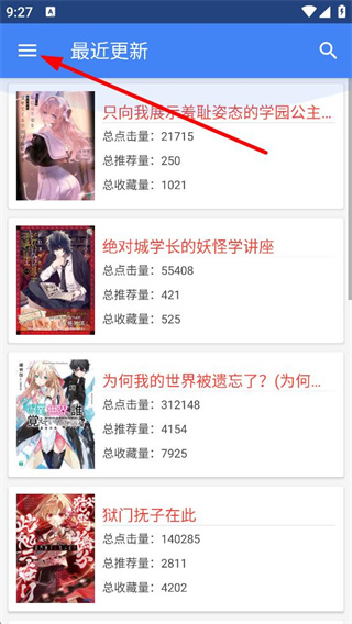 1、在最近更新的頁面,點(diǎn)擊左上角三條橫線圖標(biāo),可展開側(cè)邊欄。