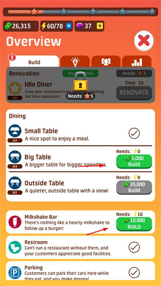 可使用經(jīng)營收益解鎖桌椅、裝飾、廚房設(shè)備等,根據(jù)空間布局進(jìn)行翻新,打造更舒適的用餐環(huán)境,提升食客進(jìn)店意愿,同時(shí)改善廚房工作條件,提高烹飪效率。