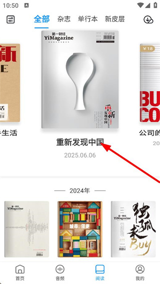 2、點(diǎn)擊雜志重新發(fā)現(xiàn)中國,進(jìn)入該雜志詳情頁面。