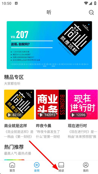 1、在APP聽的頁面,點(diǎn)擊底部閱讀,進(jìn)入閱讀頁面。
