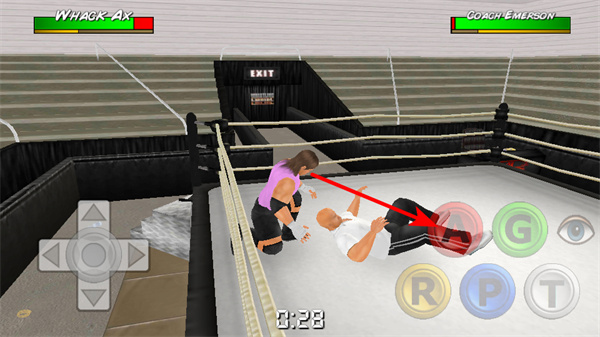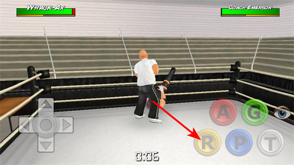 4、在與對(duì)手的交鋒中,點(diǎn)擊A按鍵,可發(fā)動(dòng)攻擊動(dòng)作,對(duì)倒地的對(duì)手造成傷害,推進(jìn)進(jìn)程。