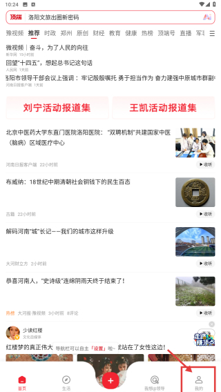 1、打開新聞類應(yīng)用,點(diǎn)擊底部我的選項(xiàng),進(jìn)入個人中心頁面。
