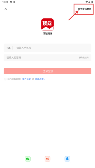 3、在登錄選擇界面,點(diǎn)擊賬號密碼登錄選項(xiàng),進(jìn)入賬號密碼登錄頁面。