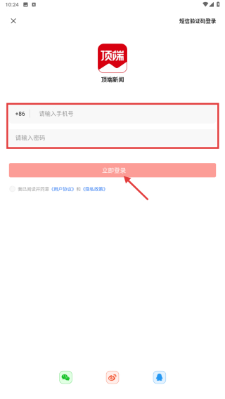 4、在賬號密碼登錄頁面,輸入手機(jī)號碼和密碼,點(diǎn)擊立即登錄按鈕,完成賬號登錄操作。