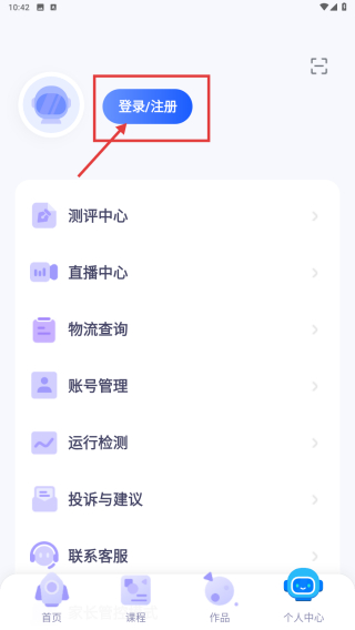 2、在個人中心頁面,點擊登錄/注冊按鈕,進入登錄選擇界面。