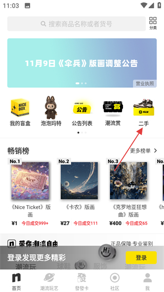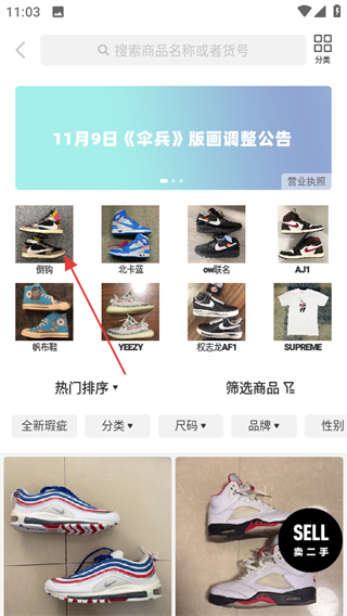 1、進入nice球鞋首頁,點擊二手,進入二手商品相關頁面。