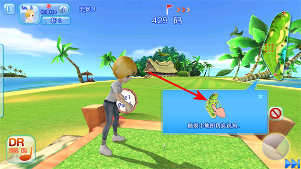2、觸摸小地圖可切換視角,通過切換視角能更好地觀察球場布局,為擊球選擇最佳路線。