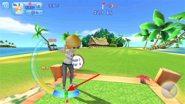 3、擊球時關(guān)注力度條,在合適的力度區(qū)間點擊擊球,可控制擊球的距離和方向,提升精準度。