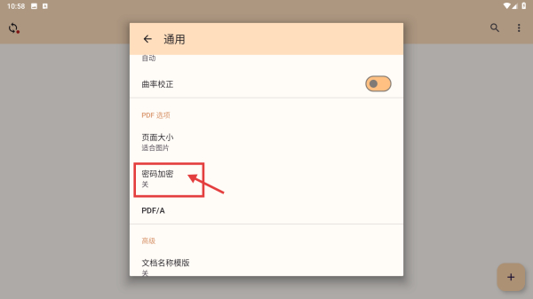 4、在通用設(shè)置界面,點(diǎn)擊密碼加密選項(xiàng),可根據(jù)需求開啟或調(diào)整文檔的密碼加密功能,以保障文檔的安全性。