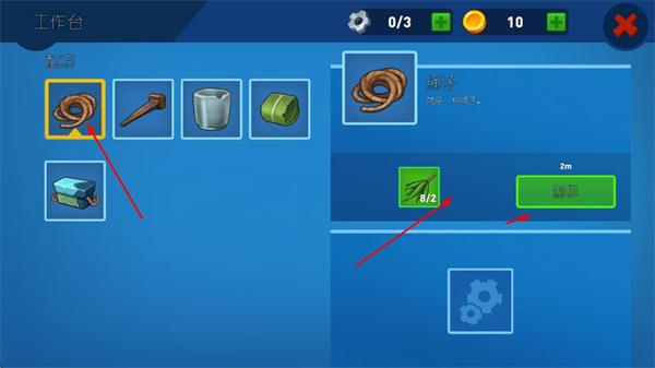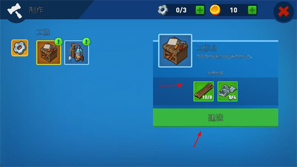 2、在工作臺制作物品,消耗相應材料,提升生存工具儲備。