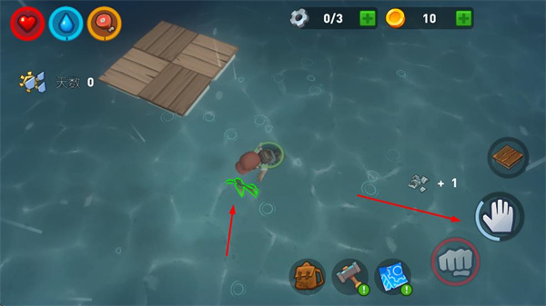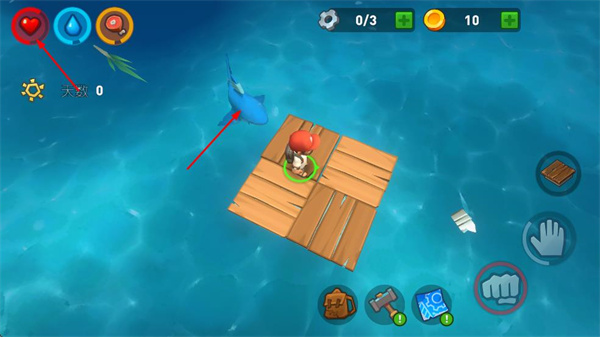 3、在海上木筏上生存,關注生命值、水分值等狀態(tài),躲避鯊魚等危險生物,保障生存安全。