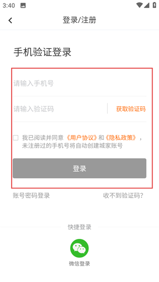 4、若選擇手機驗證登錄,輸入信息同意協(xié)議后點擊登錄,完成登錄。