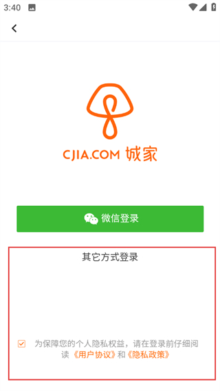 3、在登錄選擇頁面,同意協(xié)議選擇其它方式登錄進入登錄頁面。