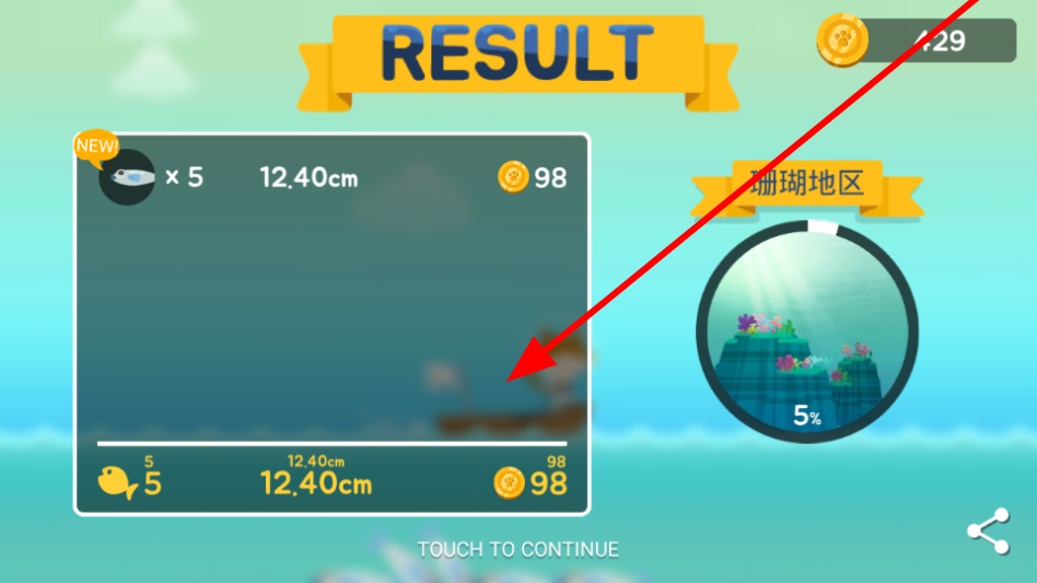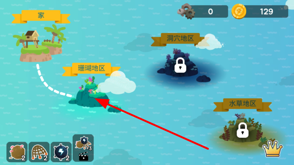 2、選擇可進(jìn)入的區(qū)域,比如珊瑚地區(qū),前往該區(qū)域,開始在對應(yīng)水域捕魚。