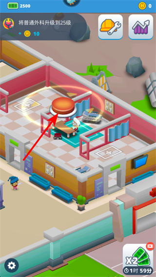 3、點(diǎn)擊科室中的紅色按鈕,可進(jìn)行科室的升級(jí)或互動(dòng)操作,助力科室發(fā)展,提升收入。