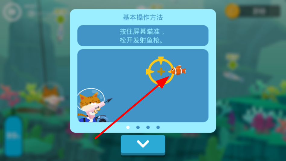 4、在游戲的基本操作是按住屏幕進(jìn)行瞄準(zhǔn),瞄準(zhǔn)好后松開手指發(fā)射魚槍,通過這樣的方式來捕捉魚。