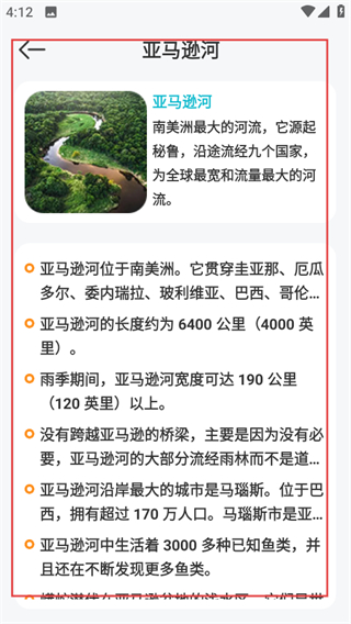 3、在亞馬遜河詳情頁面,可查看亞馬遜河的相關(guān)介紹和多個事實信息。